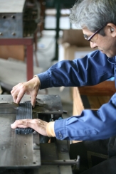 そろばんの製作は、大まかに分けて3つの工程に分けられます。1つ目は「半製」という工程で、そろばんの枠材の製材、加工をする工程です。2つ目は「組立」工程で、芯竹にそろばん玉を挿したり、枠と枠を合わせて組み立てたり、組立の前加工も含めて行います。3つ目は「仕上げ」です。組み立てられたそろばんをそろばんの形に仕上げます。何段階にもわたる研磨作業、塗装作業や定位点を打つ事もします。