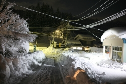 雪かきに追われる毎日でしたが、真夜中の雪景色としてみると、これはこれで風情があり、亀嵩らしいと思えます。