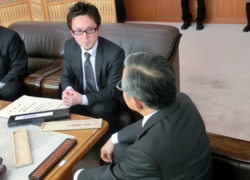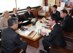 - 交付式後は溝口善兵衛知事との懇談があり、算盤作りについてこれまでの取組や現状、今後についてお話しました。