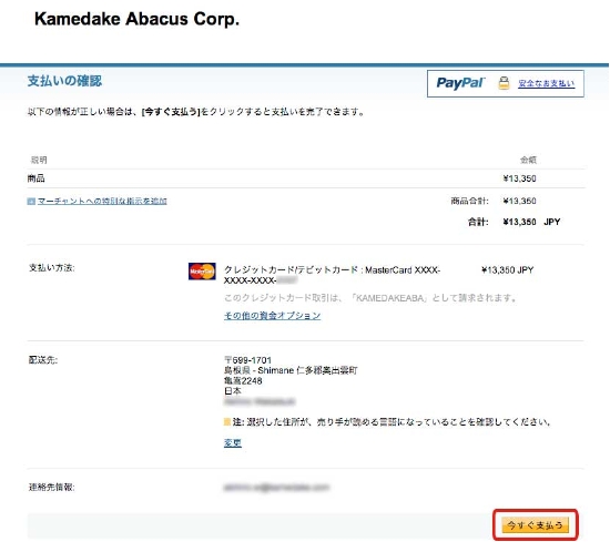 (8) 支払情報を確認の上、「今すぐ支払う」ボタンをクリックします。