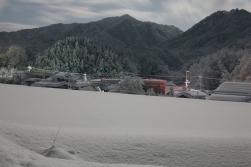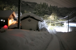 雪かきに追われる毎日でしたが、真夜中の雪景色としてみると、これはこれで風情があり、亀嵩らしいと思えます。